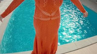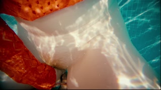 Ginger Girl in Long Red Dress Gets Hairy Pussy Creampie in Swimming Pool