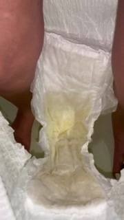 Girl fills up a diaper with piss