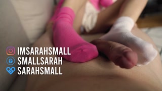 Girl Footjob in White and Pink Socks