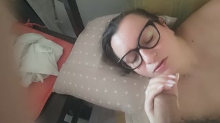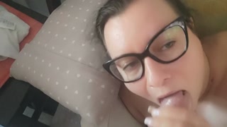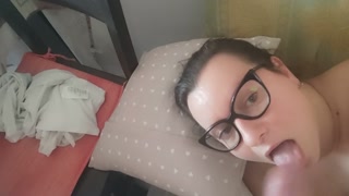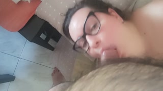 Girl gives amateur blowjob on the couch with cum in mouth