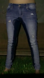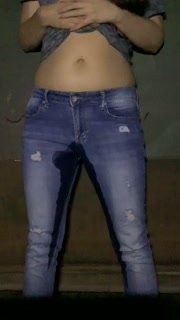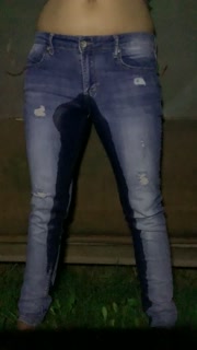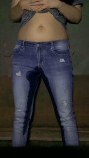 Girl pees her pants standing up in jeans