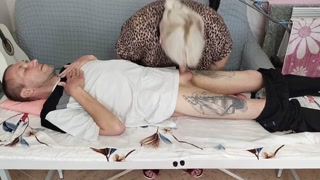 girlfriend sucks and jerks off my dick on the massage table and swallows cum