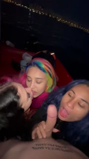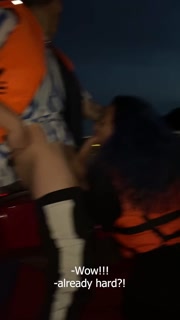 Girls surprised guy and sucked him off on boat