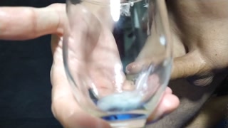Glass of cum and big dick in oil