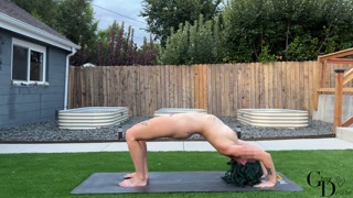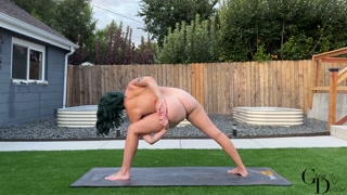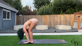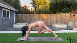 golden hour outdoor evening nude yoga | yoga with grey