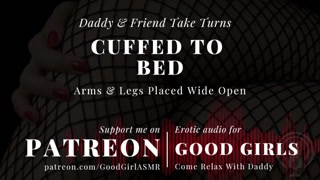 [GoodGirlASMR] Cuffed To Bed. Daddy & Friend Take Turns. Arms & Legs Placed Wide Open