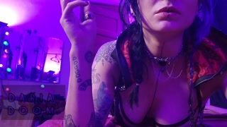 gorgeous goth puffs on her cigarette for you