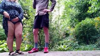 Gorgeous MILF helped a stranger pee outside and pee herself