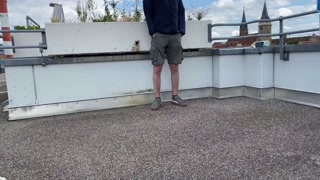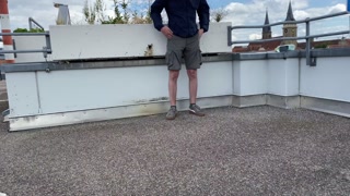 Gorgeous pissing mother-in-law helps son-in-law piss on the top of the parking lot