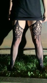 Goth girl lifts dress up to pee behind dumpster
