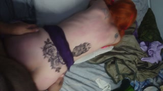 Goth girl with pigtails gives amazing blowjob then rides big cock and bends over for a creampie