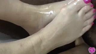 GRANNYLOVESBLACK - Grandma Strokes Lubed Cock With Feet