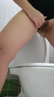 Hairy MILF Pees in the Public Toilet 💦 Just takes her Panties a side