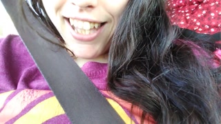 Hairy Pussy Flashing Outside Public Gas Station Car Passenger Seat PinkMoonLust Bush Cunt Flash