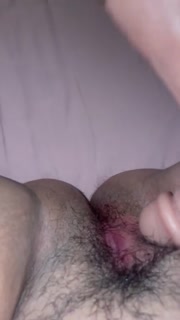 Hairy pussy takes a big dildo