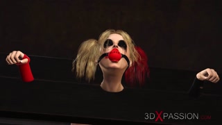 Hardcore dickgirl fucks hard a sexy Harley Quinn in the basement