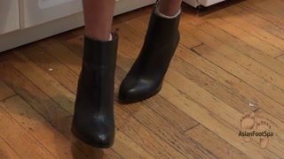 High Heeled Leather Boots While Making Dinner