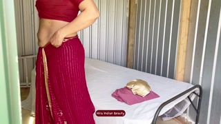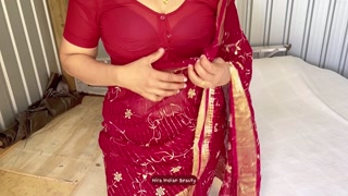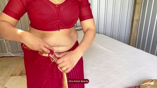 HIRA'S FANTASY: Wearing Red Saree, Blue Lingerie...Naughty Solo Dressing Show!