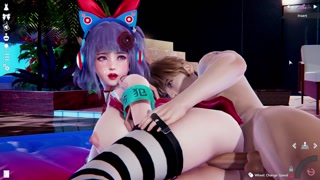 Honey Select 2:Passionate sex with huge tits at the pool at night