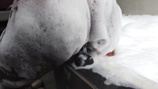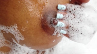 Horny brunette takes a shower and sucks him off
