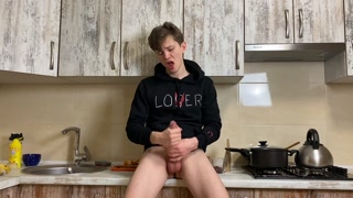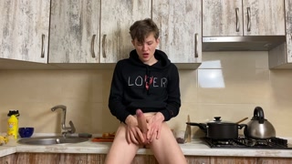 Horny College Boy Wanking at Kitchen in Сhummery & Monster Cock / Big Load
