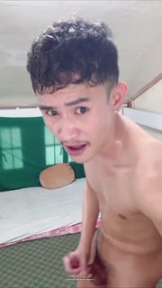Horny Filipino Boy, Teasing Himself, Cock Hard, Jerking Off, and Shooting His Cum