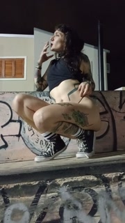 Horny girl smoking at the park