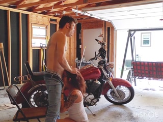 Horny MILF Face Fucked and Bent Over Creampie in Garage