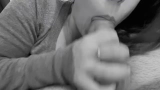 Horny redhead make a blowjob for money with huge cum in mouth