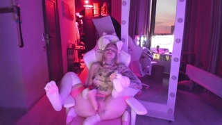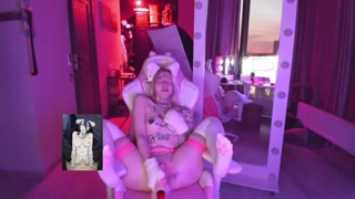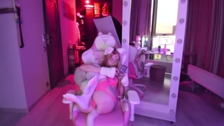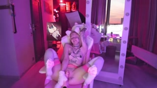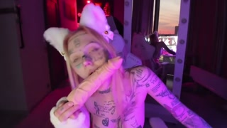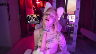 Horny tattooed catgirl playing with herself