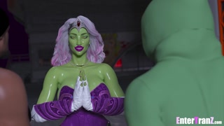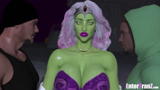 Horny thugs deep fuck a hostile Alien trans bitch