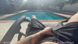 Hot Bi Big Dick Daddy Muscle Hunk & Sexy Tattooed FTM Outdoor Passionate Sex Fucking By The Pool