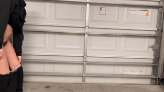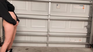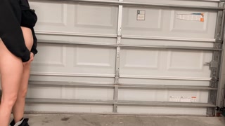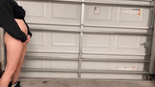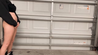 Hot college girl pees standing up in the garage at a party. Look how far she pissed