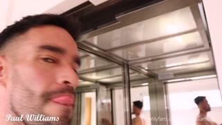 Hot fitness guy walks nude on hallway, elevator and goes to the street door. RISKY