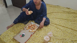 Hot indian desi village step-sister was fucking on eating pizza time on Clear Hindi