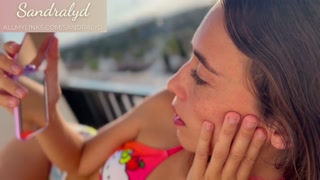 Hot Latina on the terrace shows you her ass and pussy