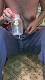 Hot milking teen drinks her breast milk