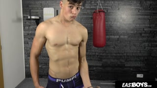 Hot muscle boy Kent Mills shows his abs
