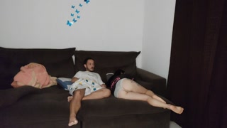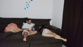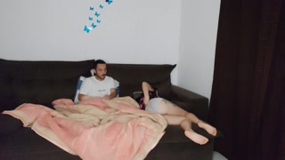hot stepmother shares sofa with stepson while husband is traveling