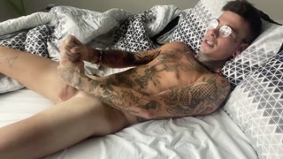 Hot tattooed guy shots own cum into mouth
