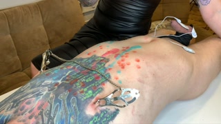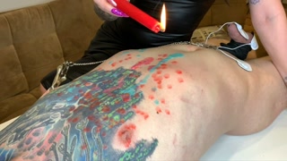 Hot Wax Games! Dominatrix pours wax on slave's body