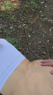 Hubby Fucks Wet Wife Doggy Style Against Tree On Forest Walk, Wet Shorts And Hairy Asshole Cumshot