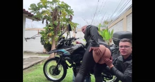 Huge creampie in outdoors on the bike
