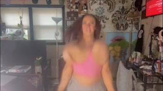 Huge tits bust outta sports bra during jumping jacks