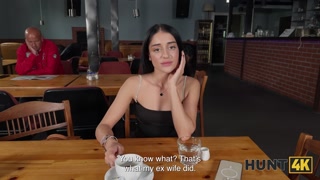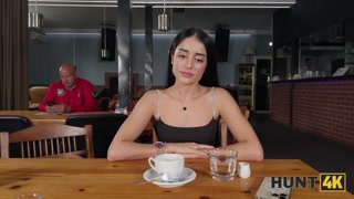 HUNT4K. Hunter found a pretty petite babe Ara Mix in a cafe and showed her real sex in the toilet