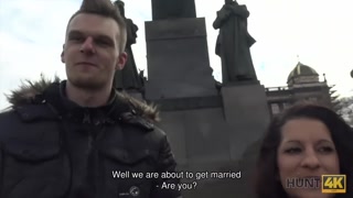 HUNT4K. Hunter pickups cute chick and bangs her in front of her BF