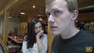 HUNT4K. Shy teen copulates with man in bar while boyfriend is around
