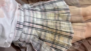 I got a handjob by wearing a skirt that changed color with semen
