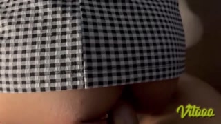 I lift up my girlfriend short dress and stick my dick in her