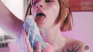 I play with cum sucking big alien dildo - Akaneiro
